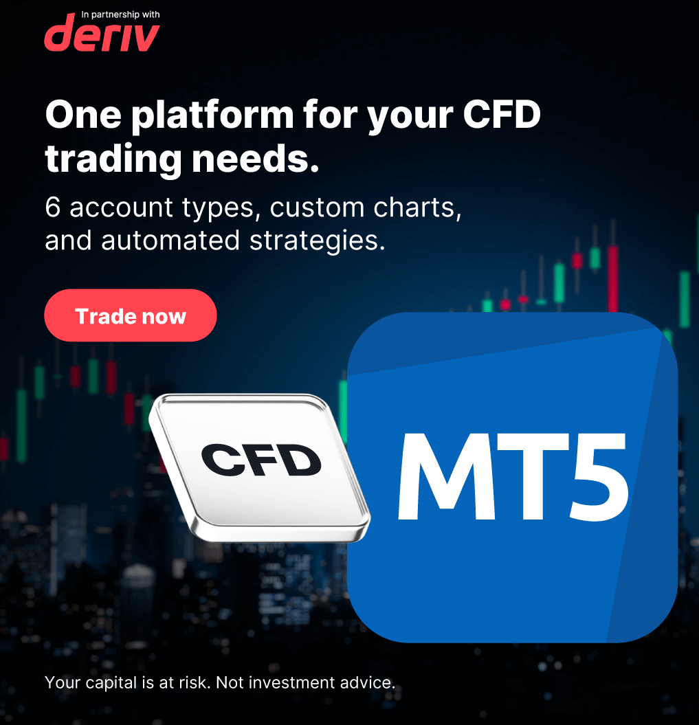 Deriv offers innovative trading options on forex, synthetic indices, and commodities with fast execution and flexible leverage. Ideal for both beginners and pros, Deriv provides easy-to-use platforms, copy trading, and 24/7 synthetic markets.